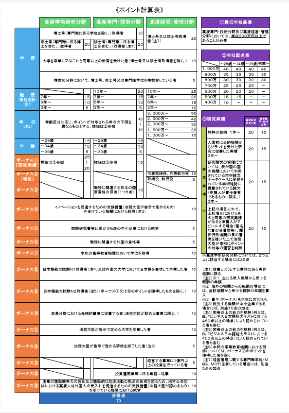 • 生活基盤の安定: ポイント加算により「高度専門職ビザ」が取得しやすくなると、入国手続きの簡略化や家族帯同の容易化、さらに永住権取得の迅速化といった優遇が受けられます,。